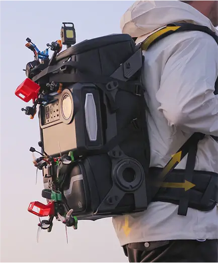 The exoskeleton-bearing structure serves as support system or foundational framework that enhances strength, while playing a critical role in ensuring load distribution and stability. It’s ergonomically-designed for a superior carrying experience and ease in movements as it reduces load weight by 20%. This system also has 16 hangable points to cater to your versatile requirements.