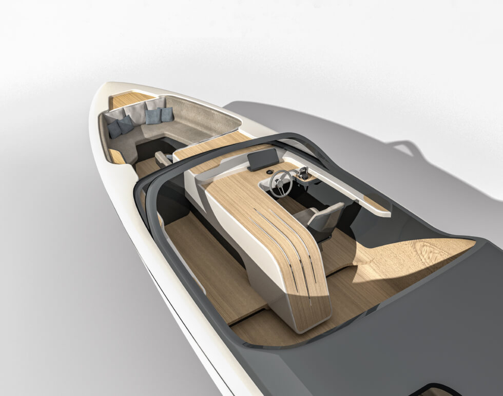 Meanwhile, the new watercraft touts a section of glazing that wraps over the full width of the beam. The retractable foiling system is outfitted with a green propulsion setup. It allows the tender to cruise up to speeds of 40 knots. It’s quiet and uses less energy than other electric models in its class.