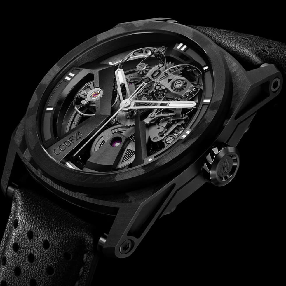 Let’s talk about the stealthy black 42 mm case, which CODE41 crafts from AeroCarbon. Aerospace buffs know that this material boasts impressive durability yet remains lightweight. In fact, unless you are aware, it can likely be mistaken for metal instead of a composite. The watchmaker sources it from a French factory that caters to special manufacturing methods.