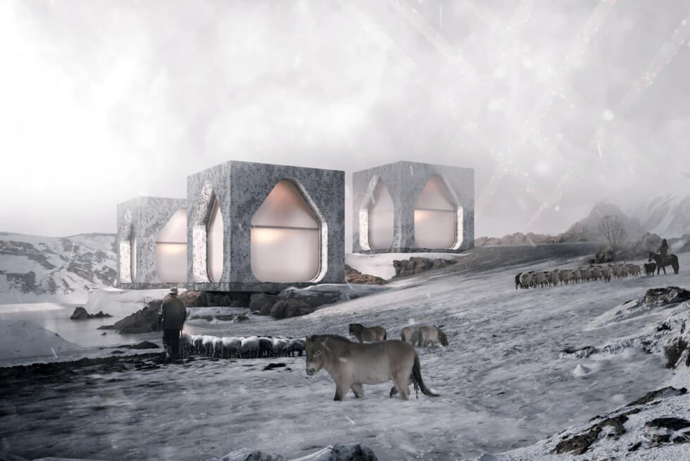 Instead of round, his yurts come in cuboidal structures and made from concrete. This way they can withstand strong winds and fixed to the ground, unlike traditional gers that are basically portable tents. Bayaliev also envisioned them to offer visibility into the outside world.