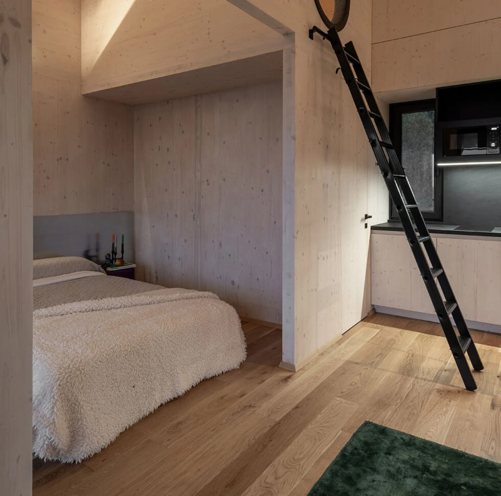 To keep the structure level, a section appears to hover courtesy of stilts. The configuration does not disrupt the movement of wildlife as well as the flow of rainwater. Its simple yet distinctive from features a cantilevered roof that forms an overhang over a 291-square-foot terrace. The setup encourages owners to spend most of their time outside.