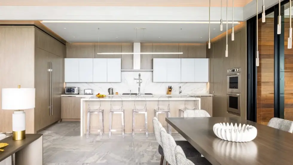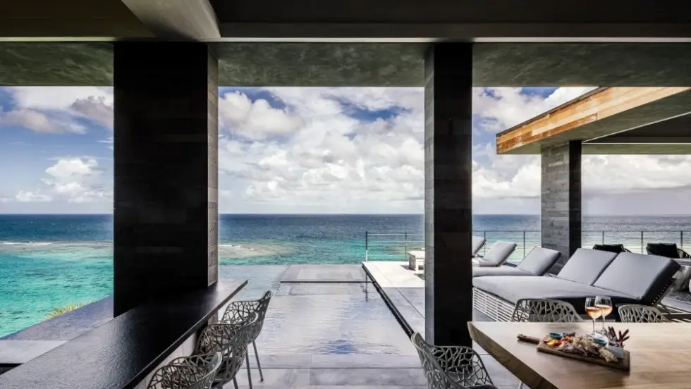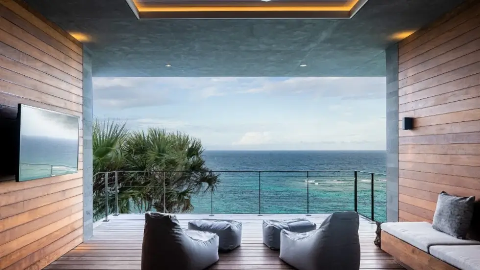 The Constellations is a luxe lodging with a grand entry hall that perfectly frames the ocean leading to open-concept living spaces. It focuses on al fresco living as such the abundance of sliders, Euro-Wall windows, and large terraces that connect indoors to the decks.