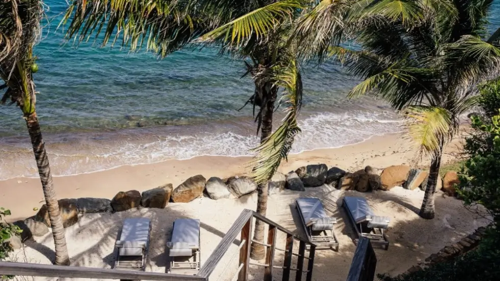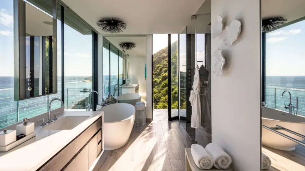 This is a dazzling hillside estate in the Oil Nut Bay community that boasts panoramic views of the cerulean waters and has its own private beach. It’s an ultra-contemporary home that spans 4,470 square feet and has four bedrooms and five bathrooms. It sits on the north side of the island and is very exclusive with no other home in sight. It even has endless views of Anegada Island and Richard Branson’s Necker Island.