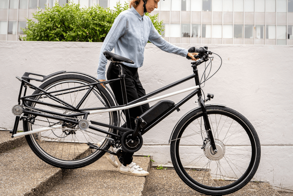 Instead of a conventional cargo rack or basket, it transforms into something whimsical yet functional. With the help of a unique folding system, the rear wheel can extend outward. This tool-less mechanism then reveals a large loading area.