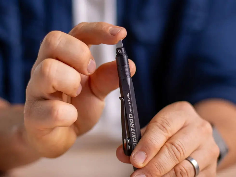 It is a compact, threaded extension of the system featuring a quick-disconnect loop that lets you swap, combine, or remove modules to adapt to different tasks and environments without adding unnecessary bulk. In the box, POCKITROD includes the main tool, the keychain companion, and a set of alternative tips.