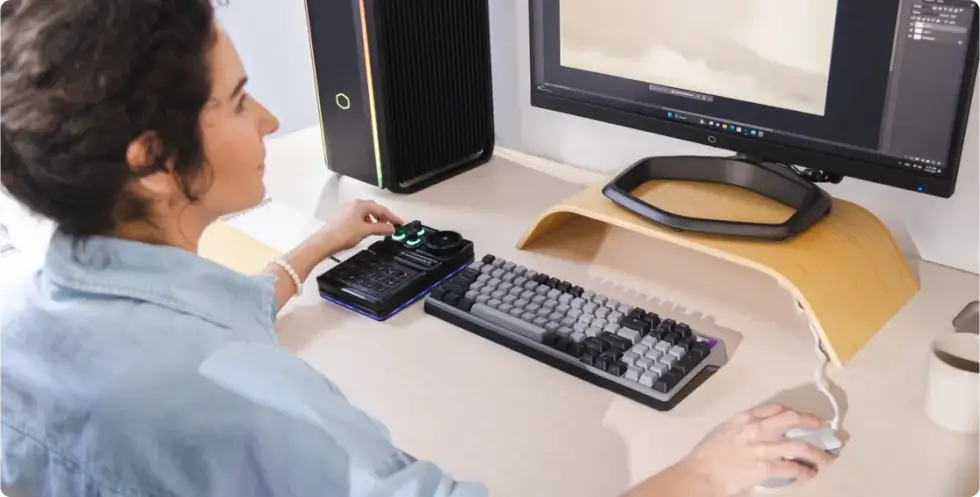In total, there are five units you can integrate into your workflow: 15-Key IPS Module, 5-Fader Module, Encoder With IPS Display Module, 3-Knob Module, and 2-Roller Module. Then there is the optional Plus+ Stand to prop up the MasterHUB at an ergonomic angle. A magnetic foot is also available out of the box. Customization, on the other hand, is via Cooler Master’s software.