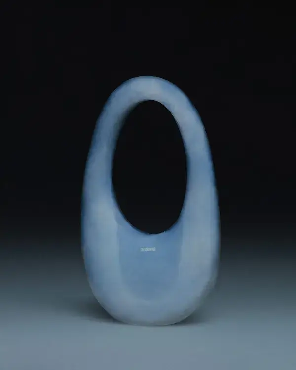 NASA describes aerogel as the lightest solid material on Earth and is formed by combining a polymer with a solvent, and this mixture turns into a gel. The liquid from the mixture is then extracted and replaced with air. Aerogels are considered porous, low-density and though may appear cloud-like, are actually solid to the touch. These properties may have convinced Coperni to experiment on it for the Air Swipe Bag.