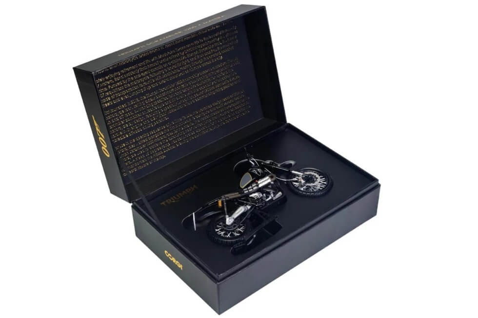 As you can imagine, the actual two-wheeler from Triumph sold out rather quickly after the announcement. Hardcore fans of the fictional British spy are surprisingly willing to fork over crazy amounts for exclusive items. However, if your budget is on the modest side, this 1:12 scale model from Corgi should do the trick.