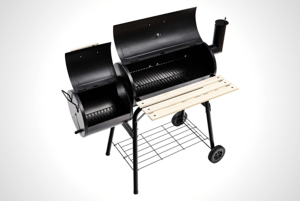 Unlike most gas grills, this one is lightweight at just 29.5 lbs. Nonetheless, you have two wheels to help move it around. You have two fire boxes/grill grates to work with, while the wooden shelf gives you space for food preparation and more. The Costway BBQ Grill stands 42.5 x 45.5 x 25.5 inches (HxWxD). Now you can show off your manly grilling skills while enjoying a cold one.