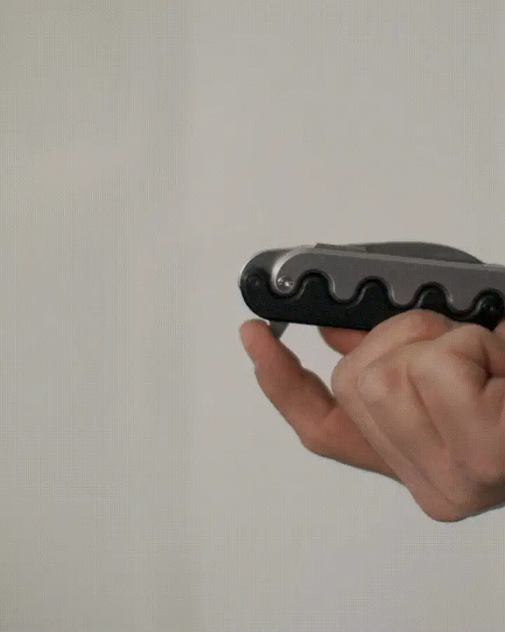 Speaking of the blade, it is compact at just 2.5″ long and crafted from durable, sharp, and highly corrosion resistant 12C27N steel. The entire knife is formed entirely of stone washed and black PVD-coated stainless steel. When closed, it clocks in at the dimensions of 4″ x 1.5″ x 0.5″ and when opened at 6.75″ x 1.5″ x 0.5″.