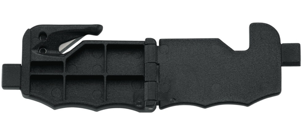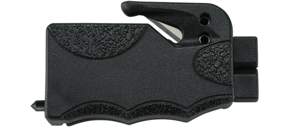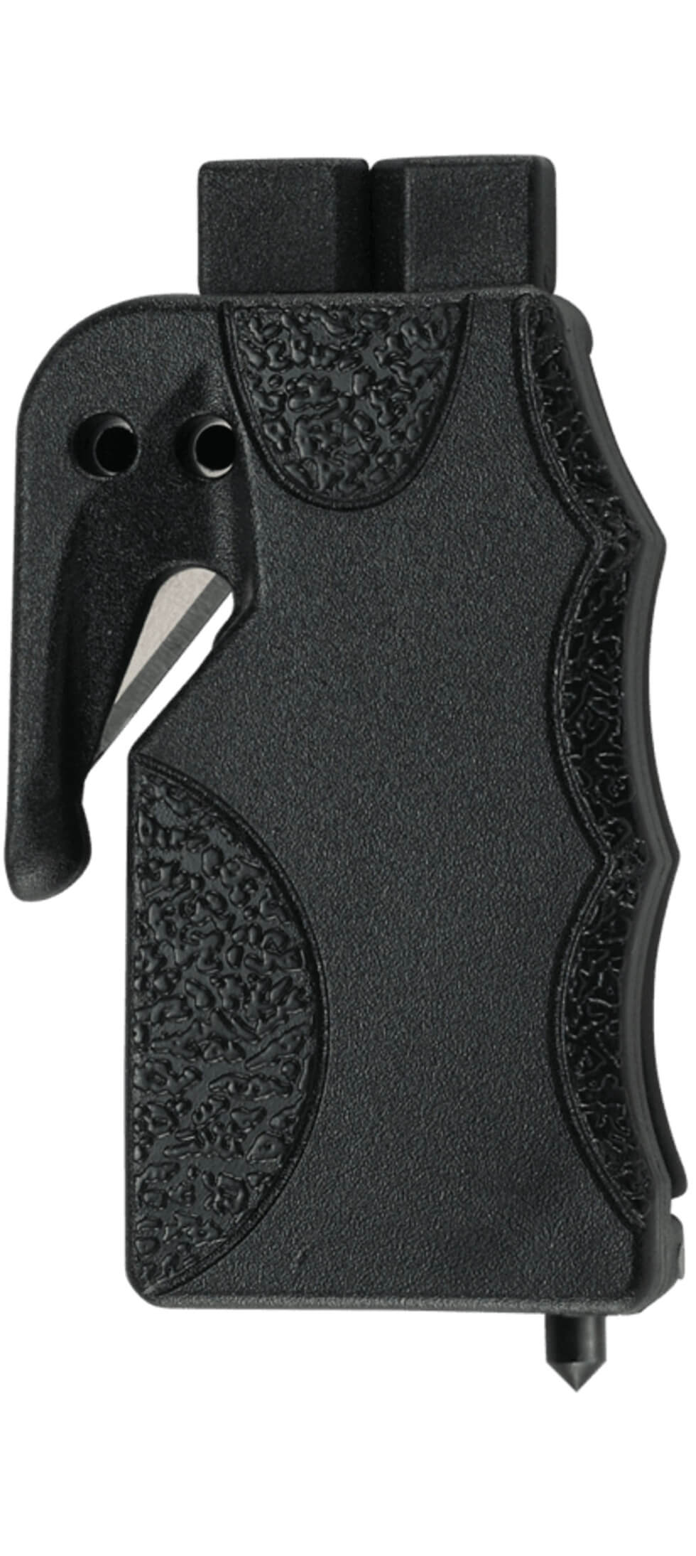 Then there’s also a glass breaker to puncture side windows. The window breaker comes with a safety cone tip cover for protection when stowed so you don’t accidentally hurt yourself. This tool attaches to seatbelts for quick deployment and is designed for durability.