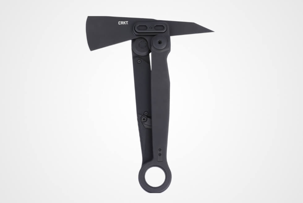 CRKT calls it the “first-of-its-kind morphing axe” that comfortably sits in your pocket and hand. Caswell designed it to be pocketable like a folder but with the functionality of a robust Tomahawk. Hence, it features two striking surfaces: a Tomahawx axe on one side and a blade with a spike on the other.
