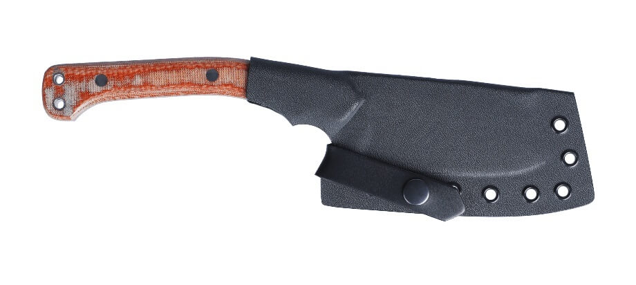 This blade comes with a strong thermoplastic sheath that features multiple mounting options. It is compatible with the Kydex sheath and has a leather loop to secure the knife inside the sheath. It also weighs 11.30 ounces, has an ambidextrous handle, and has a belt loop.