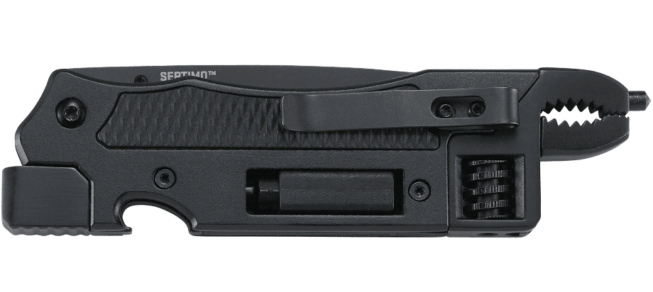 The CRKT SEPTIMO multi-tool is for both indoor and outdoor use although its quality is best tested in the latter. Its handle is made with 6061 aluminum for strength and durability so it does not easily bend. It has glass inlays and reinforced with nylon. It uses 8Cr13MoV steel for the blade for easy sharpening and maintenance.