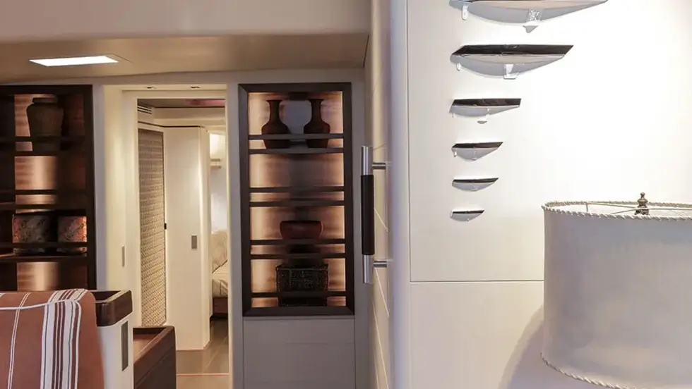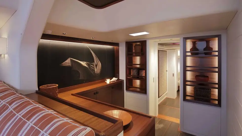 Available Project Thunderball technical specifications indicate a gross tonnage of around 1,100, five decks, and a 36-foot beam, among others. Accommodations include an owner’s suite and five VIP cabins — enough to host up to 12 guests, while a crew of 15 has nine cabins of their own.