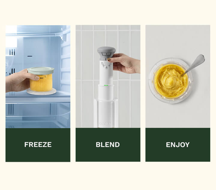 Simply connect the wand then choose your setting, and hold down the “on” button with a light downward press of the handle. The green light on the wand turns red once the process is done and you get smooth ice cream with no icy lumps. The Cuisinart FastFreeze features a compact design for convenient storage. It comes with three half-pint detachable and dishwasher safe dessert cups with lids for storage.