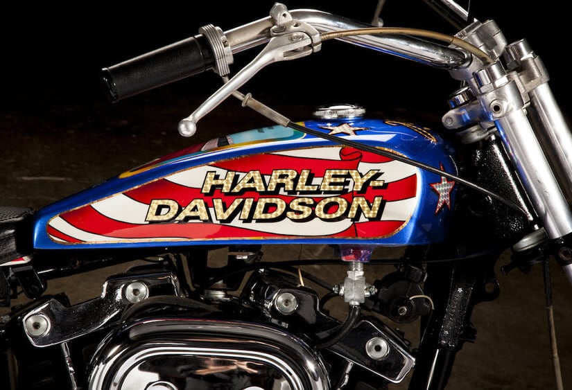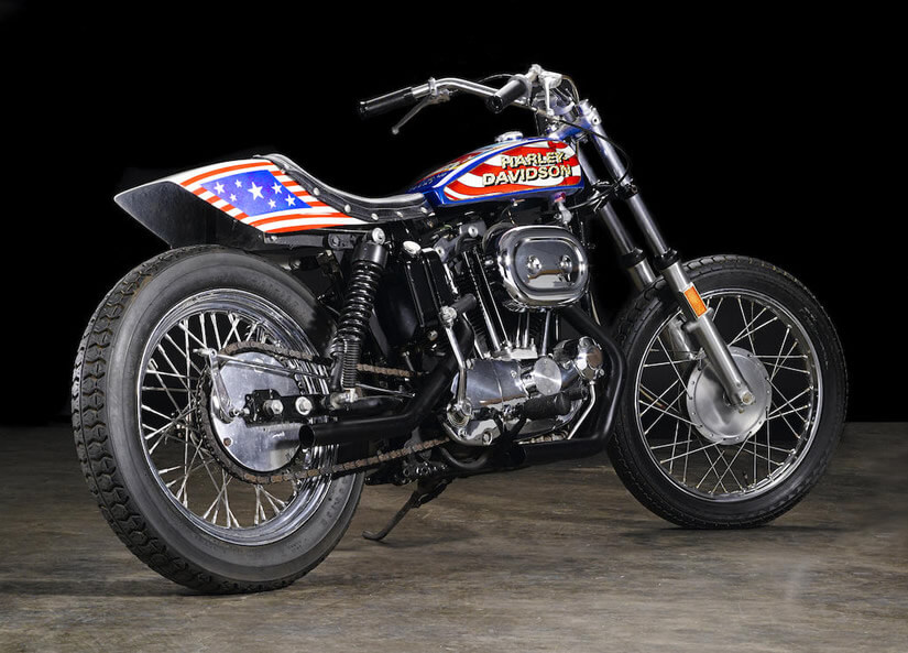 One of the motorcycles that were custom made for the movie was part of a recent auction,where it was expected to fetch up to $100,000. It was a gorgeous 1976 Harley-Davidson Ironhead Speedster 1000, customized to look exactly like one of Knievel’s iconic XR-750 jump motorcycles.