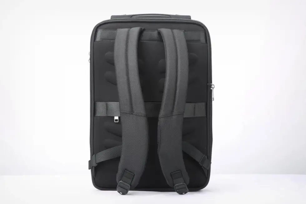 To make it comfortable for long-term wear, the back panel is breathable. By default, the Cyberbackpack measures 4.3 inches but can expand to about 6.3 inches with a slide of a zipper. A luggage strap is also available so you can hook it up to the handle. Finally, you also have a discrete anti-theft compartment to store your important stuff.