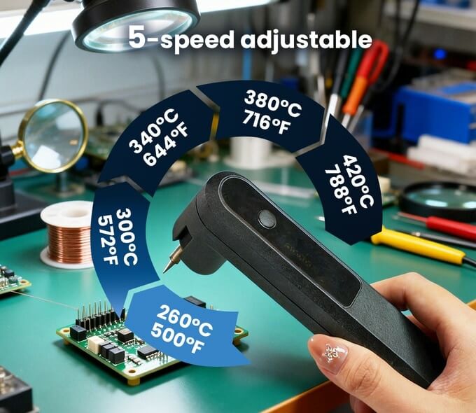 This soldering iron works with a companion app with an HD display for clear visuals of even the tiniest numbers and fine details on the circuit board. This way, it ensures accurate and intuitive operation each time.