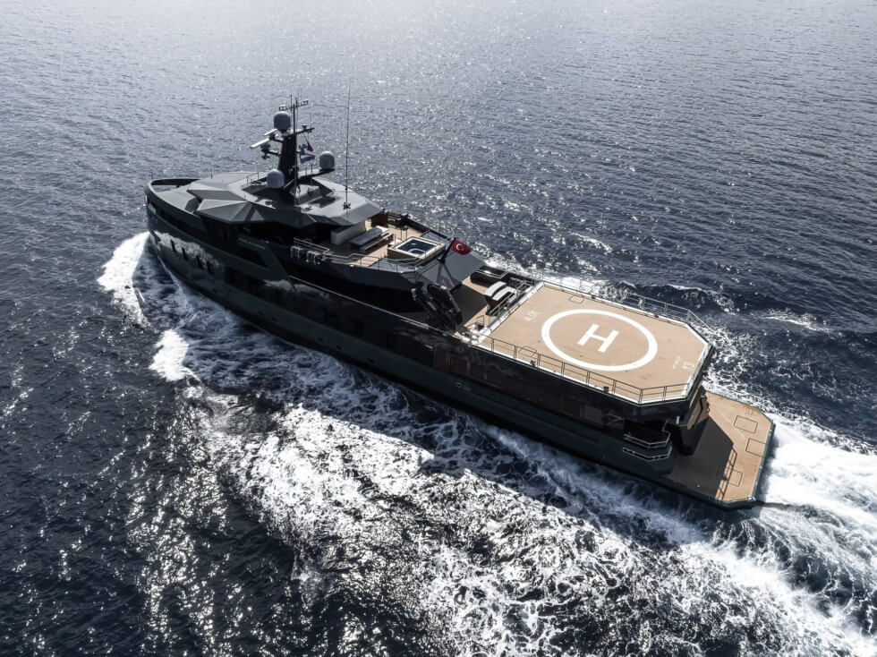 Furthermore, the ice-class model is currently the only vessel in the lineup to span 190 feet from tip to tail. Other notable names that have contributed to this project are EYOS Expeditions and Azure Yacht Design and Naval Architecture. Its defining detail is a green exterior contrasted by dark grey with black glazing.