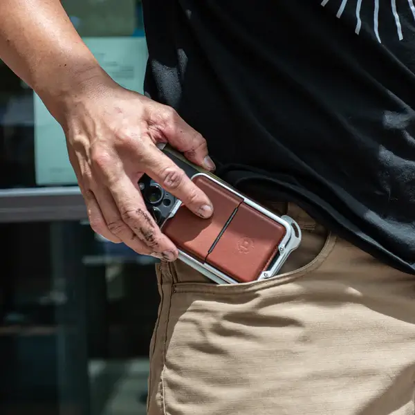 This new release lets you redefine and streamline your everyday carry by integrating your card case with your iPhone. Its magnetic back plate affords it its MagSafe compatibility, enabling you to separate your phone from your wallet for a quick charge.