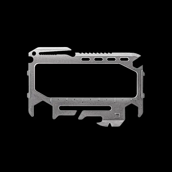 The multi-tool in the Dango T01 Tactical Wallet easily slides into the cavity where the cards sit and nests securely into the safety locks built into the purple chassis. This allows for a safe and efficient operation of its tools. These include a serrated and sharpened edge, a nail pryer, and ruler. It also has a 10/15mm hex, a smartphone stand, and a paracord cutter.
