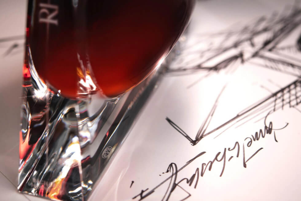 The hand-blown Baccarat crystal manages to pay homage to the distillery’s roots in a spectacular way. “I started with the classic Hennessy bottle shape, but I wanted to push the boundary of the design,” notes Libeskind. “The result was to insert the soft curved shape within the crystalline form that echoes the spirit of Richard Hennessy.”