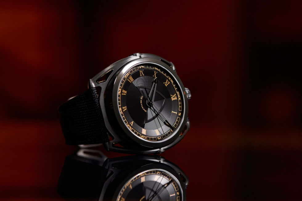 Fans of Formula One racing should have a clue as to its aesthetic influences. As the name hints at, John Player Special’s iconic black and gold livery adorns the Titan Hawk JPS. It touts a 43 mm x 9 mm polished black zirconium case. Cutouts on the lugs are framed by yellow titanium inserts to match the overall theme of the timepiece.