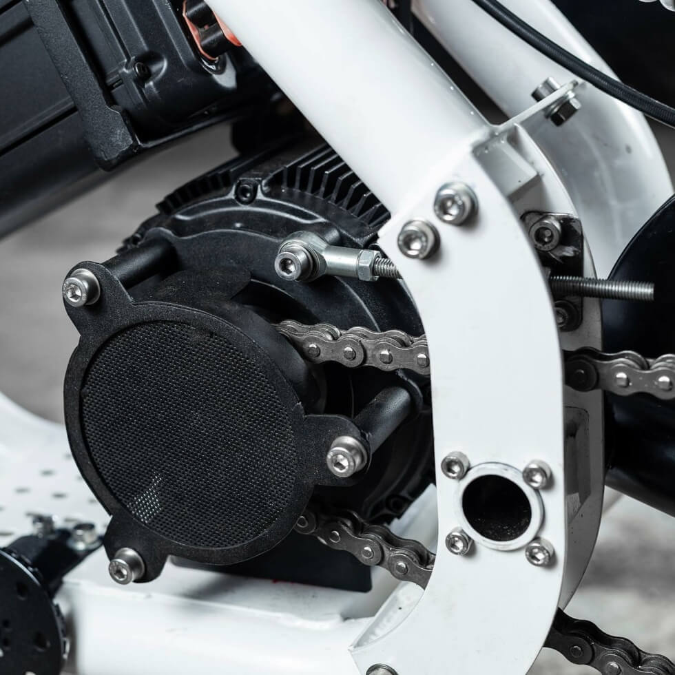 UMC is using 50 mm tubes in addition to a bespoke swing-arm without a body kit or additional fairings. It’s clear that aerodynamics is not the high point here, but zero-emission performance is. This leaves the internals in full view. The upside-down forks are sourced from a KTM 390 Duke and comprise the suspension system along with a rear mono-shock.