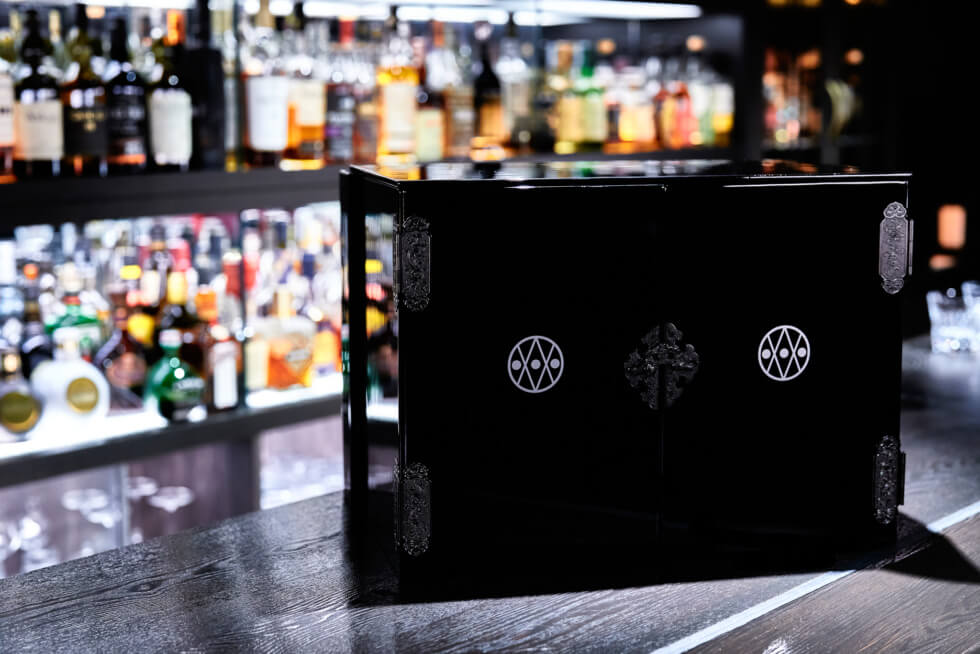 He stated, “in designing the Acclaim Whisky Stage I wanted to create a celebration by bringing together references from Japanese history, craftsmanship and artistic traditions.” The meticulous detail that goes into each set is nothing short of remarkable. Everything ships inside a Wajima Lacquerware cabinet adorned in gold leaf layering.
