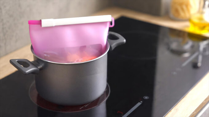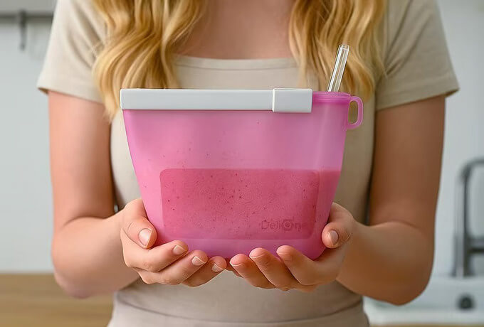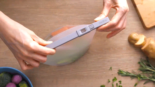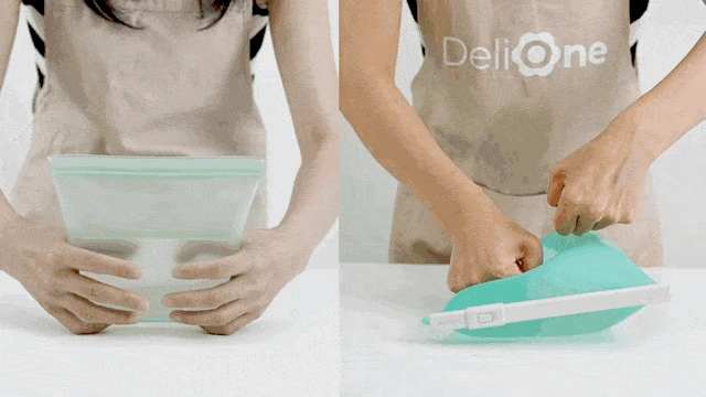 The DeliOne Duo Lock Pro silicone food bag stands out in the market of sustainable products and re-defines zero-waste kitchen. It’s more than a durable leakproof and shakeproof storage solution, but also a reliable alternative to kitchenware. It boasts great temperature resistance so you can cook with it or freeze food in it.