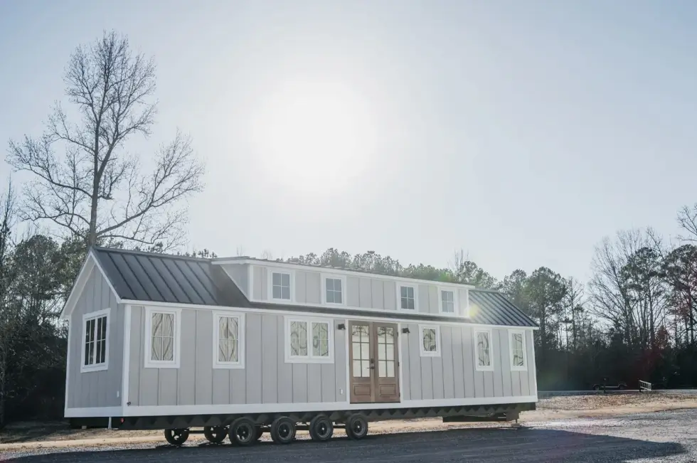 The Denali Bunkhouse by Timbercraft Tiny Homes pushes the boundaries of tiny home living with its well-thought out space utilization and finishes. This manufactured home can sleep two to six people and you can hardly call it tiny given its luxurious amenities.