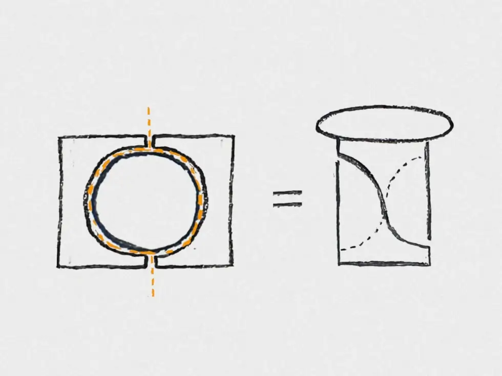 The table makes up of a disc carved into the middle of the wood. Then the remaining wood sections is split in half to take the form of the legs. The stems “slide” into each other (hence the name) to form a sturdy base to hold the center upright. The legs connect in the middle to form a cross shape from where the disc top rests.