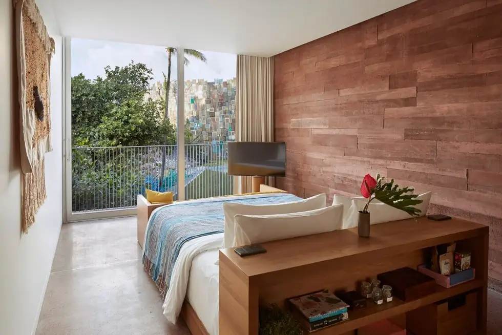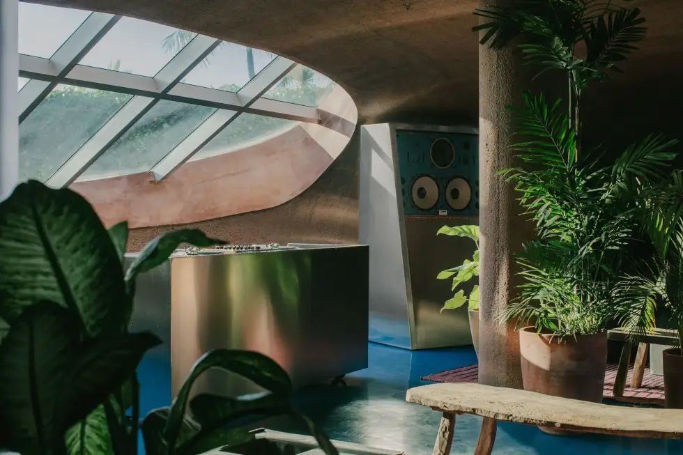 Desa Potato Head owes its fascinating aesthetic to the Office for Metropolitan Architecture (OMA). According to reports, the distinct theme conveys care for nature alongside its modern design. The sprawling site where the 225-room hotel stands, as well as its spaces, features lush greenery such as plants and trees.
