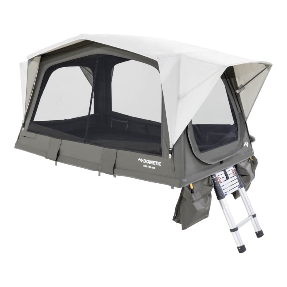 The Dometic TRT 140 AIR rooftop tent inflates at 9PSi in two minutes and deflates in as fast as three seconds from just one external inflation point. It guarantees protection from the elements with its robust and durable construction made from 300D ripstop polyester. Its Weathershield TC polycotton material reduces condensation and regulates internal temperature for a comfortable rest.