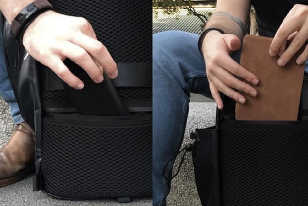 The pack alone already gives you loads of storage options. On the back are quick-access hidden pockets for your laptop, tablet, and for banknotes. There is also a small internal zippered pocket while side pockets can hold a water bottle, tripod, and more. You also have a keychain clip on the side and the shoulder straps have a slot for your earphones and another hidden pocket.