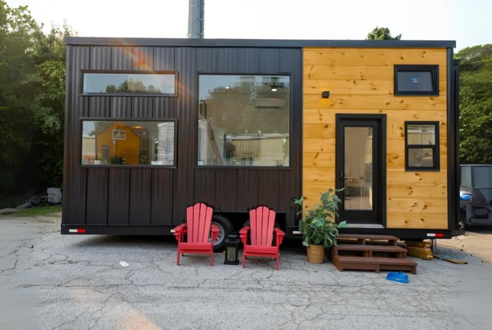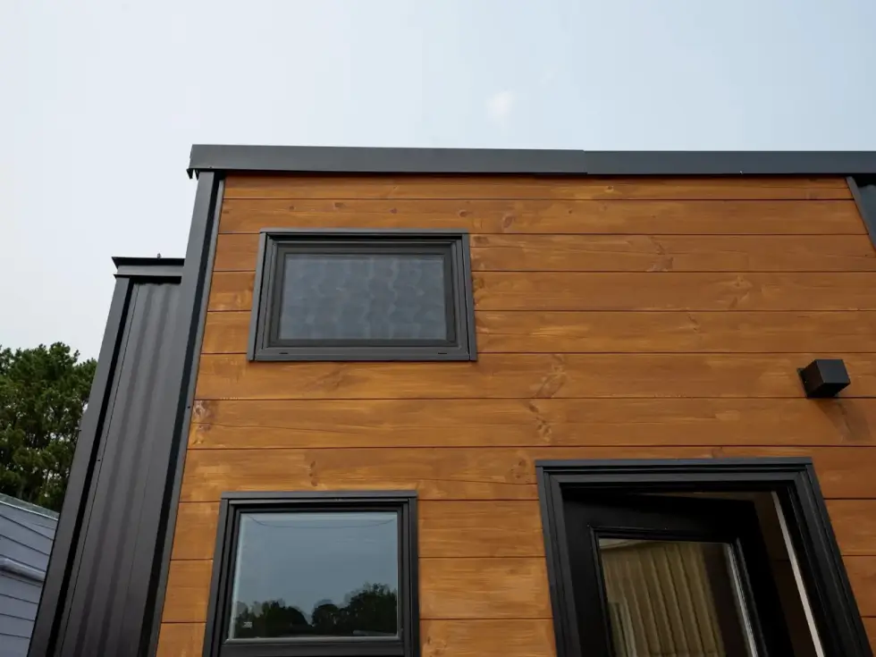 The Avalon V2 offers 204 sq. ft. of space that manages to squeeze in three bedrooms. Based on a double-axle trailer, it features metal and wood cladding and has a light-filled interior thanks to generous glazing. The repositioned glass windows offer natural light and seamless indoor and outdoor integration.