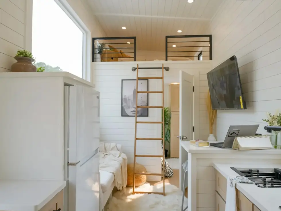 Meanwhile, sleeping arrangements for the Avalon V2 come courtesy of the main bedroom in the ground floor. There are also two loft bedrooms each with enough headroom. They sit on opposite ends of the house and accessible via a storage-integrated staircase. Then the bathroom has a full shower and efficient fixtures. Despite its compact footprint, the design addresses the need for flexible sleeping options to accommodate more people or even a small family.