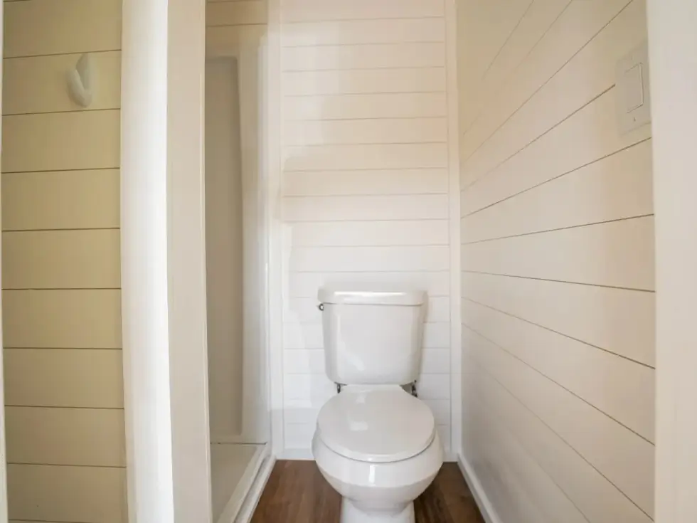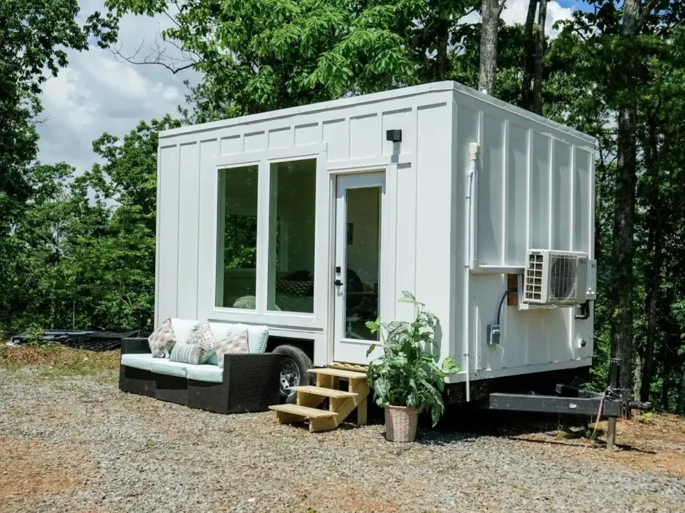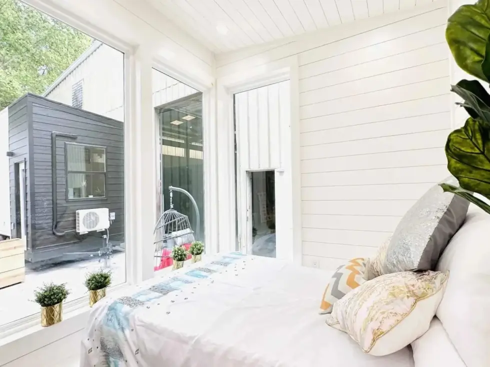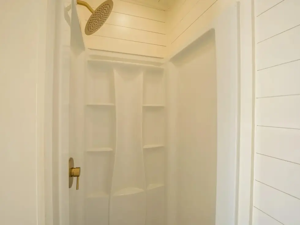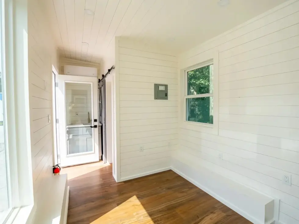The Fairfax tiny house benefits from large bay windows for natural lighting and beautiful outside scenery. Thermal insulation comes via a mini-split heater and AC unit, while the propane instant water heater offers instant warmth.