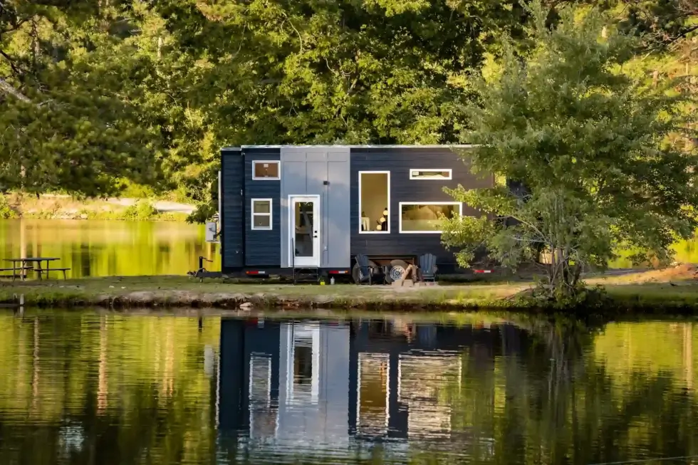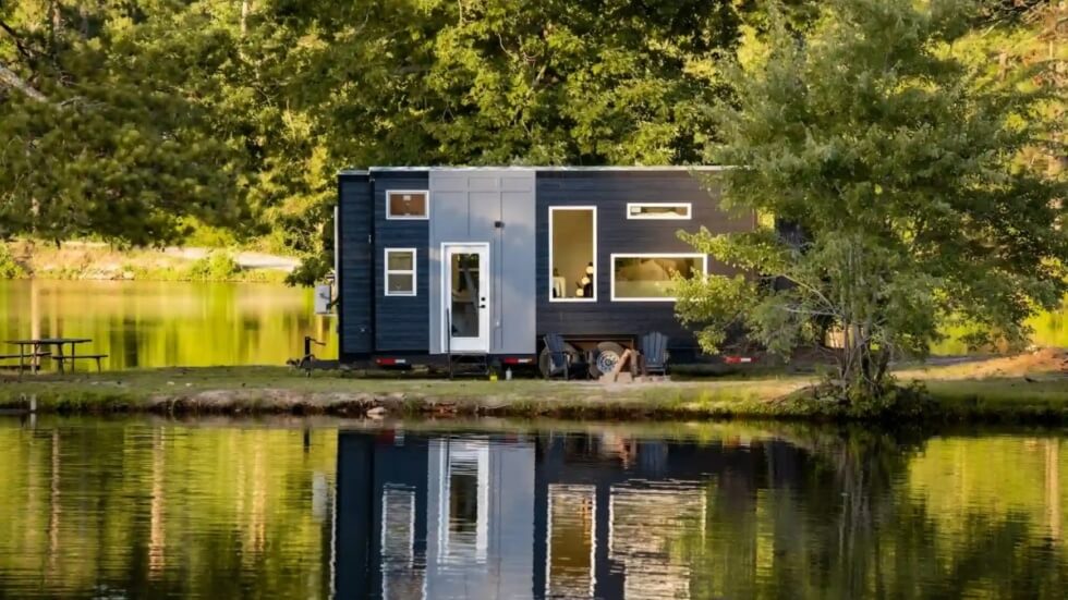 Dragon Tiny Homes’ Vista makes a great full-time residence for a couple or a family of three. It has two loft beds and ample space for entertaining and dining. Plus, large glazing offers expansive outside views, giving it a spacious and airy feel.