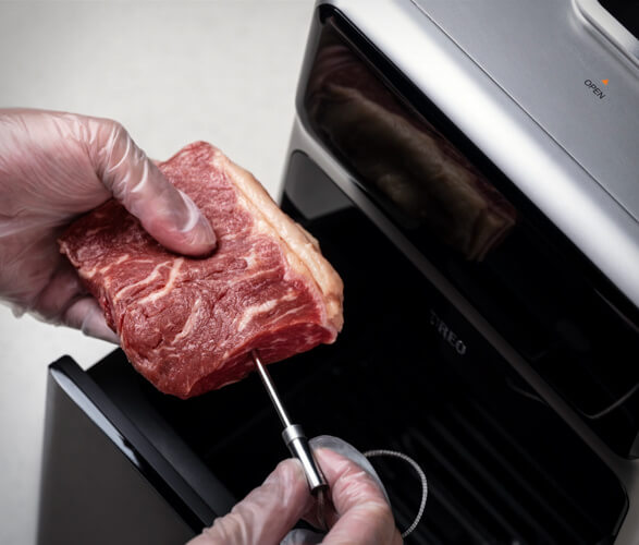 Cooking with meat, for instance, can be tricky because it involves different temperatures to ensure a tender texture. This is where the dual-point sensing cook probe comes in handy. It monitors the temperature in the meat’s core and outer layers to provide real-time data to the DREO ChefMaker Combi Fryer for precise adjustments to moisture and temperature.