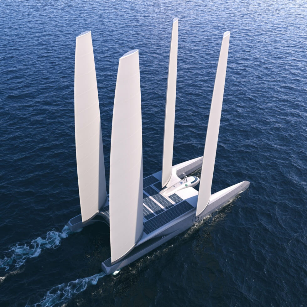 Four massive sails propel the MVY forward, while its hydroelectric turbines generate power for electrolysis. The hydrogen gas is then stored in tanks until full, which are then offloaded to a mothership or directly to a nearby port. Drift Energy already conducted trials, albeit at a smaller scale to great success. The company estimates a single twin-hull can supply over 154 tons in a year.