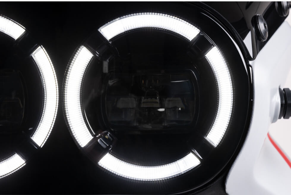 These are shod in Pirelli Scorpion Rally STR tubeless tires. Ground clearance at 9.8” should let riders to travel over anything they want to. There are also six riding modes, full LED headlights, and a 5” color TFT instrument panel. Ducati’s design presents the DesertX as a slightly beefier dirt bike and it looks badass. Now you can have fun anywhere!