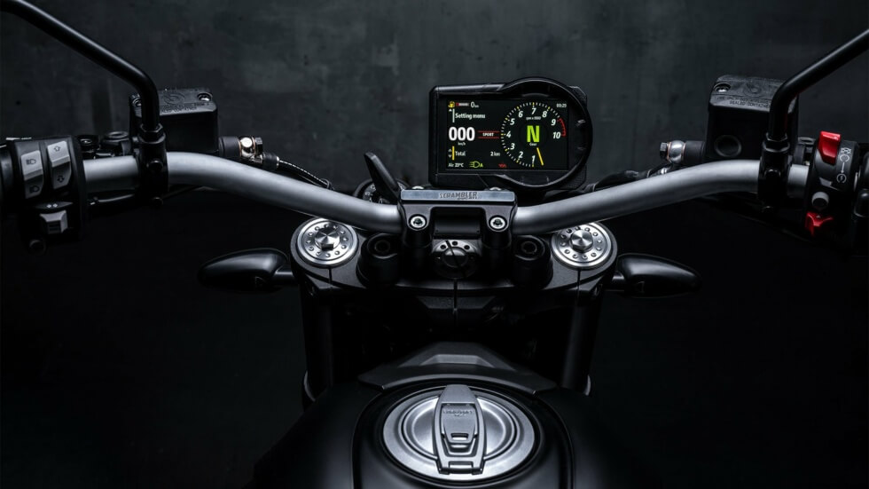 Although the Scrambler Icon Dark already looks gorgeous, Ducati encourages owners to personalize their bikes. Keep track of all the essential information through the 4.3″ TFT display and see which of the two riding modes (Sport and Road) is currently active. Apart from performance, the suite of safety features helps you focus on the fun.