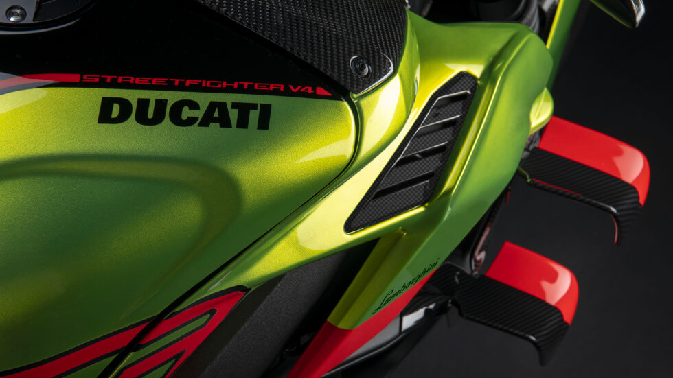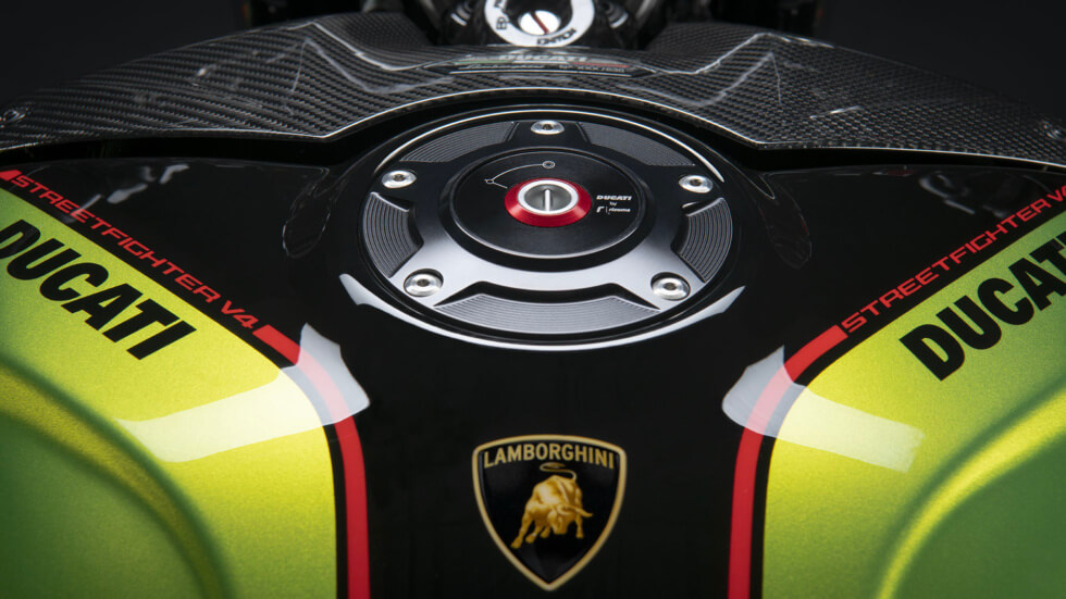 The number 63 marks the year the Sant’Agata Bolognese group was founded. Ducati plans to offer only 630 examples of the Streetfighter V4 Lamborghini. Moreover, another 63 are available for Lamborghini owners to personalize and match with their cars.