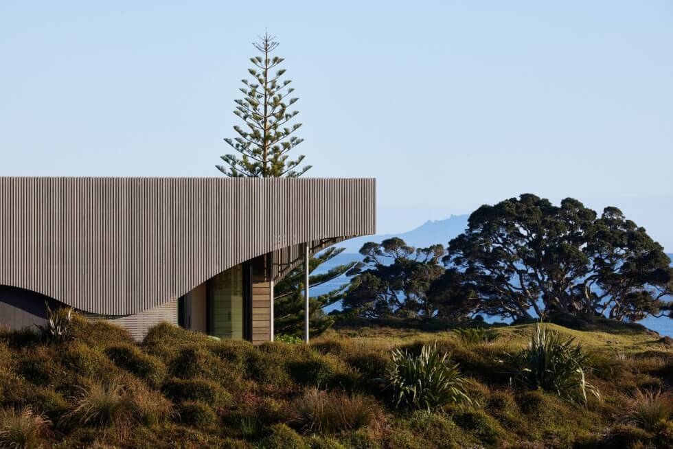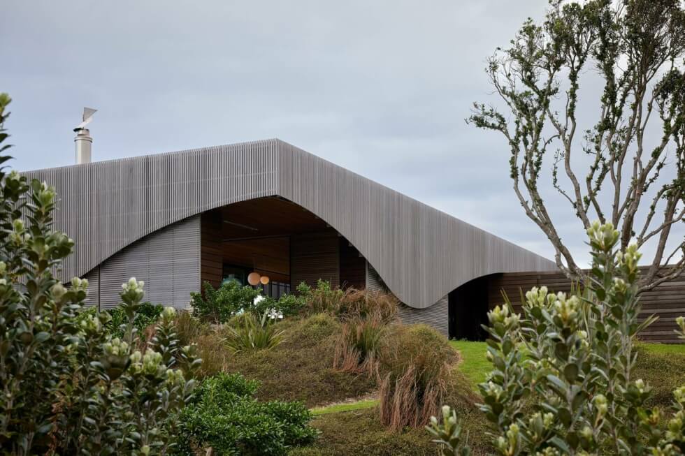 Herbst Architects designed the Dune House in New Zealand to provide uninterrupted views of the ocean in the distance. Also to host a couple of bedrooms and two smaller sleepout structures: all these are set under construction restrictions that require a 200m setback.