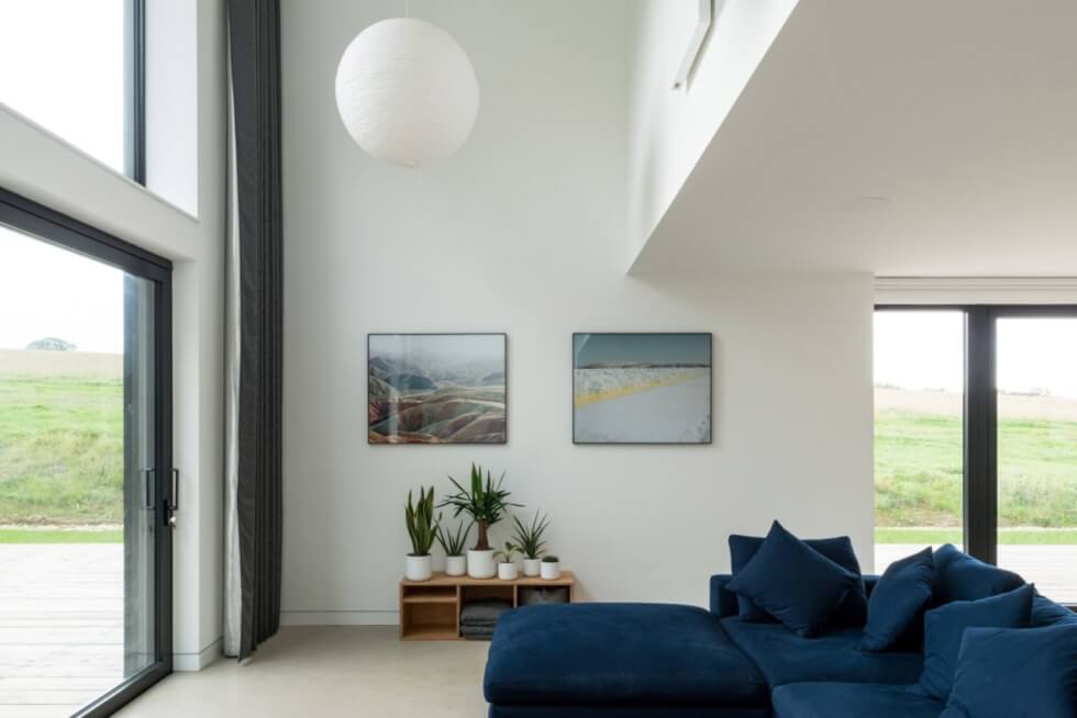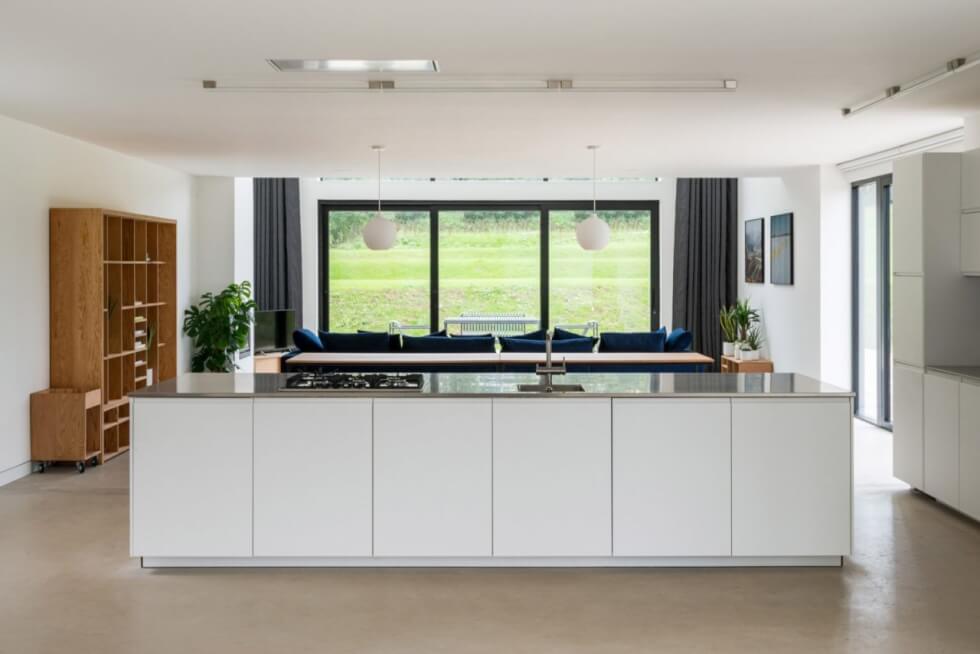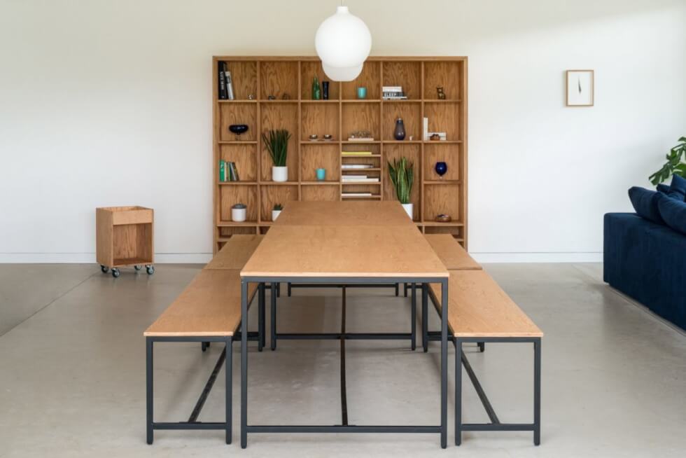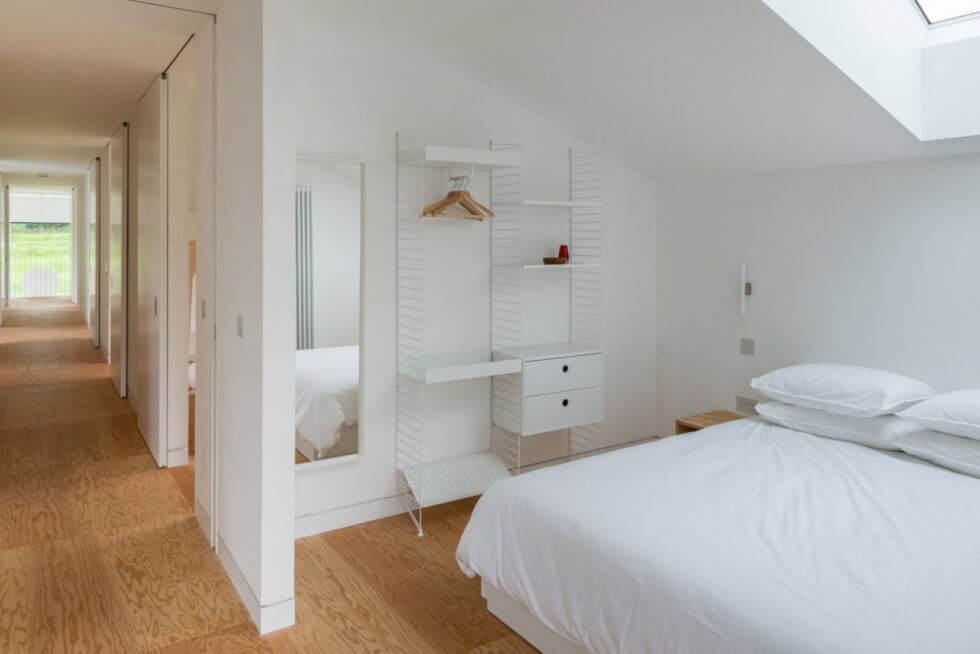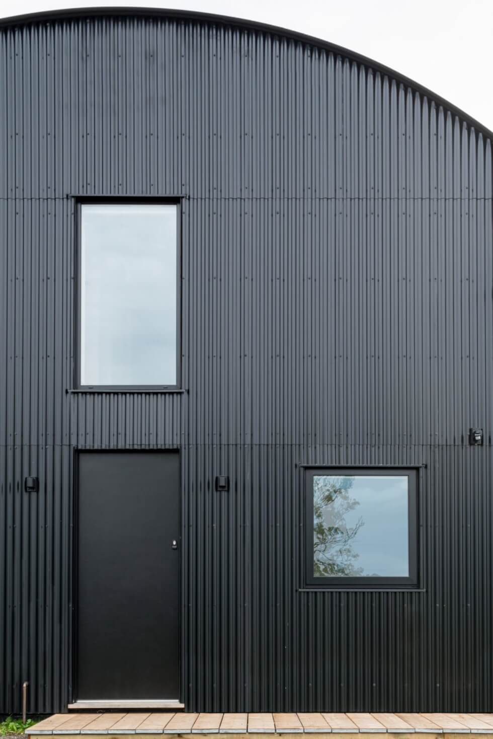 The DUT18 Barn uses industrial and contemporary furnishings for a sleek, uniform, and minimalistic yet elegant appeal. It uses concrete for the floors on the ground space and wood upstairs. The furniture pieces are made from durable Douglas fir. The use of corrugated steel cladding for both the wall and the roof gives the exterior of the barn a modern edge. It also unifies the facade and the roof that lends the house its purest form when viewed from a distance.