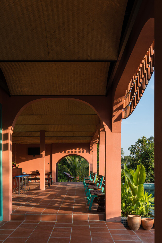 BLOCK Architects says the Duyen Casa II owner was on a tight budget, but they managed to pull off something remarkable. After a brief tour to learn about local building materials and handicrafts, that’s when inspiration struck. Tiles, bricks, and round steel bars become curtains that drape across the façade of the resort.