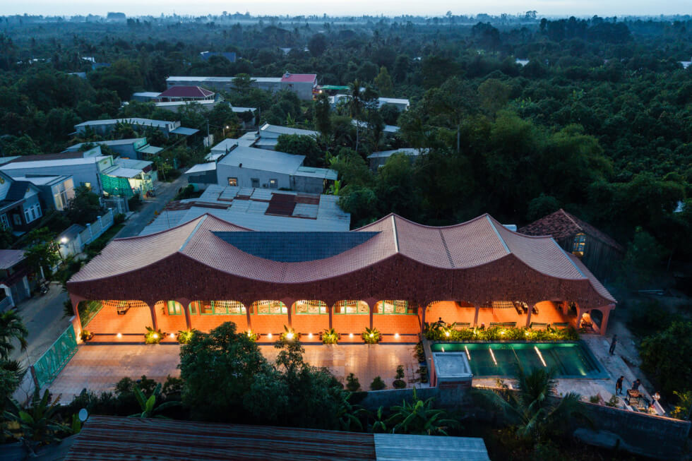 So far, it seems like a wonderful place for backpackers to stay when they visit Cao Lanh city in the Dong Thap province. For those wondering, this modest establishment is in Southern Vietnam. You can easily single it out thanks to the distinct earthy aesthetic of its exterior. The terracotta color of its tiled roof surrounds another made of sheet metal.