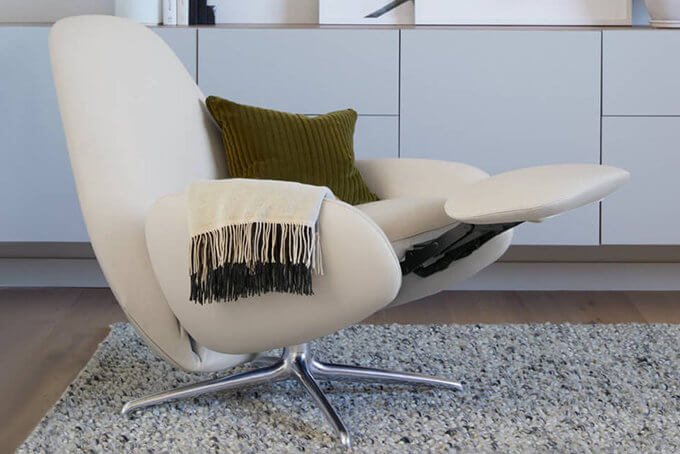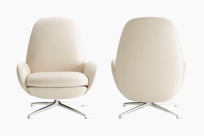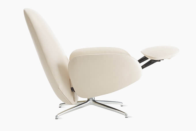 The DWR Vala Swivel Recliner takes a unique approach to the aesthetics of a recliner. Instead of the bulky and sometimes inelegant lounger, you have one that looks more like an ordinary reading chair.